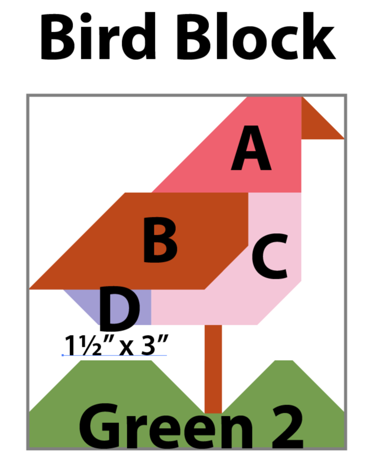 Under Cutting instructions for the Bird Block, measurement for Fabric D is 1-1/2” x 3”